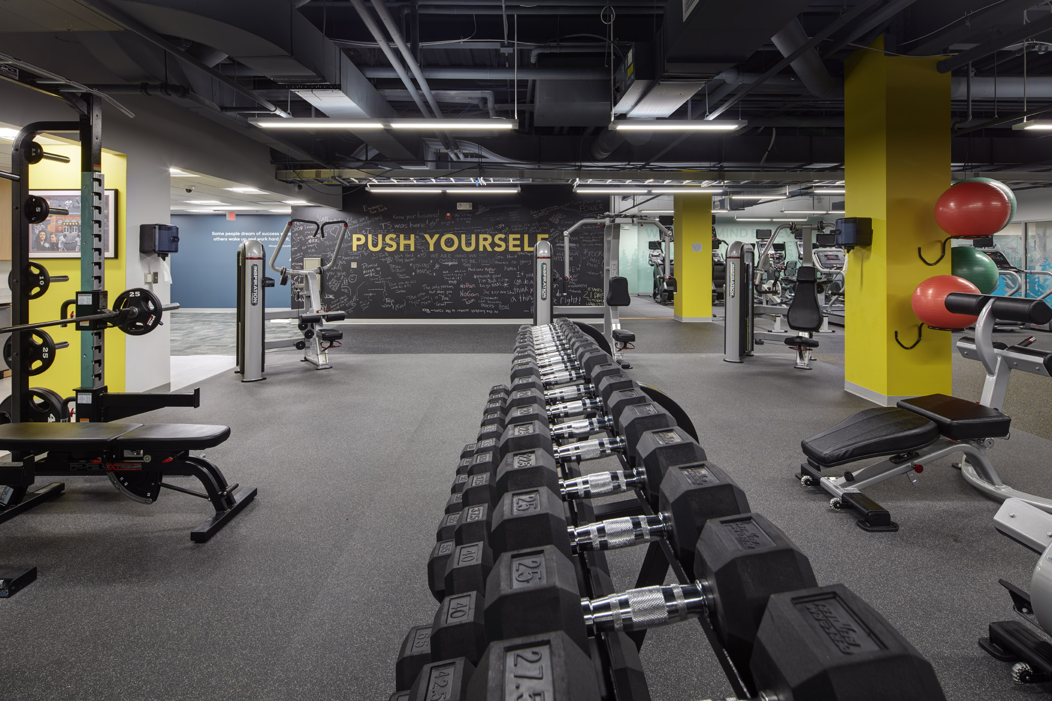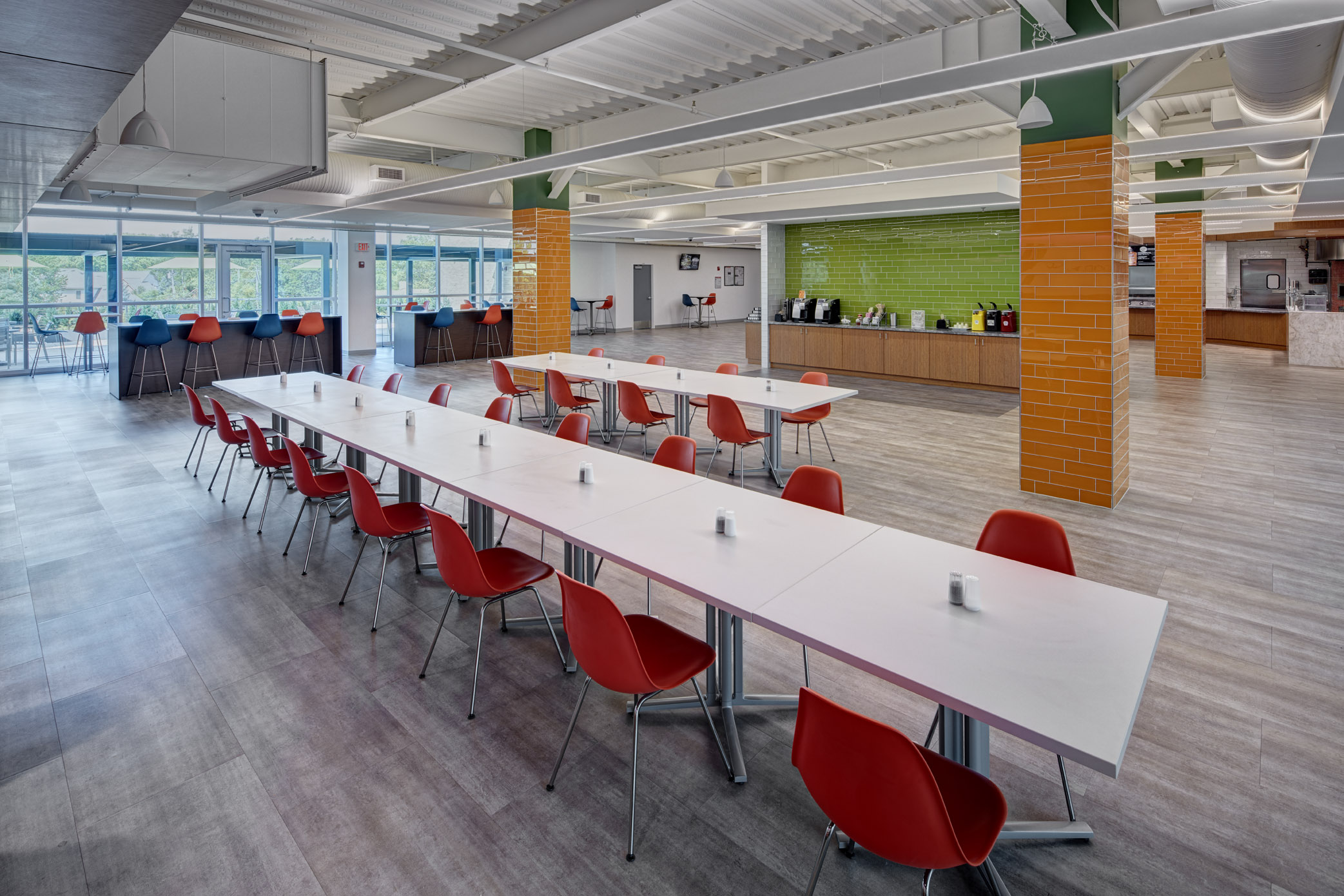 As the lines between work and life continue to blur, services and programs that centralize and simplify people’s lives become the new necessities. These top-of-the-line amenities help differentiate Michigan First Credit Union and to attract and retain employees in today’s competitive job market. Some of the highlighted amenities include active lobbies with a café and expanded bank branch, fitness and wellness facilities, new cafeteria with a full-service kitchen and second-floor outdoor terrace, six short-term sleeping units for out of town guests and an eight-lane bowling alley in the lower level. The MINT is a 10,000 square foot unobstructed conference center and event space that can accommodate up to 700 people. This event space is open to the community and can be booked for banquets, business events, training, and presentations.