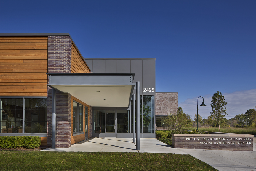 An overgrown, vacant lot in the Birmingham Rail District was transformed into the sophisticated site of a shared medical building. The industrial aesthetic of the Rail District was carefully preserved through integrating raw materials such as brick, cedar, metal, and glass. The use of dark brick, selected to achieve a refined industrial aesthetic, creates a sense of strength and permanence. It is accentuated by the thoughtful use of glass, wood, and steel on each elevation to balance the weight of the brick. The interior space addresses the challenge of tempering mass with a sense of balance. A substantial canopy sheathed in dark wood is suspended from the ceiling at the main entrance, a sharp counterpoint to the elevated ceilings in the offices. Complementing this is the open and airy common reception area with its display of glass and structural steel.